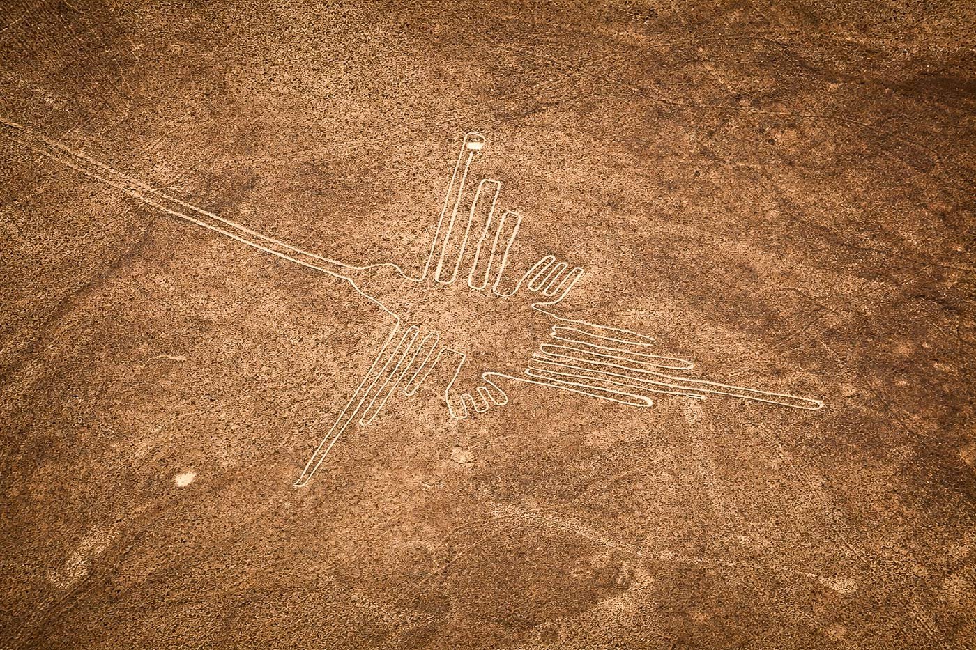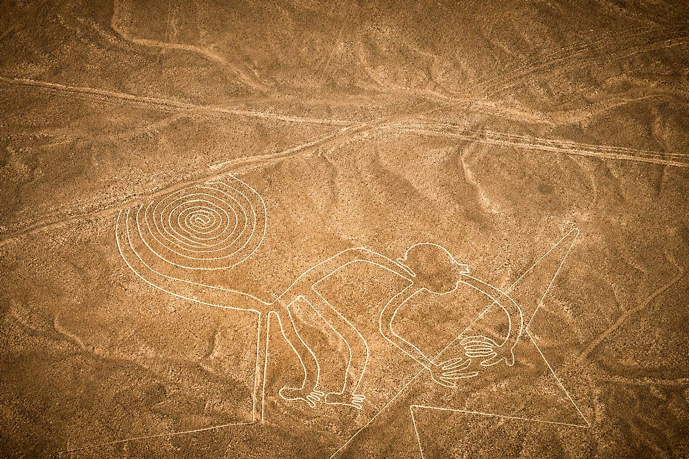 Durante el sobrevuelo, podrá apreciar las enigmáticas Líneas de Nazca, gigantescos geoglifos que representan figuras como el mono, la araña, el cóndor y otras formas geométricas que continúan siendo uno de los mayores misterios arqueológicos del mundo.