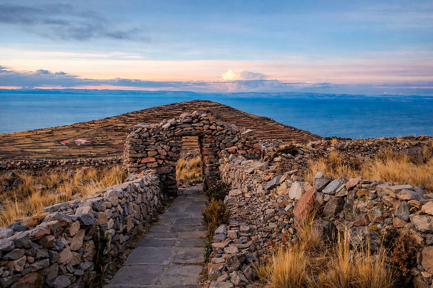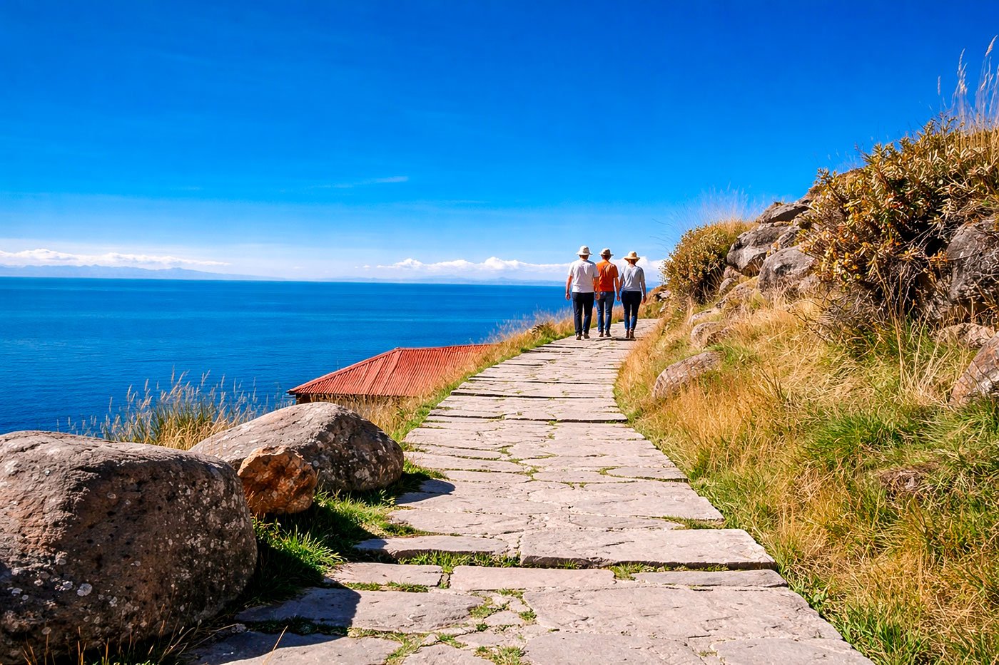 Posteriormente, continuaremos hacia la Isla Taquile, antigua posesión del Imperio Inca, donde aún se conservan tradiciones, arquitectura y sistemas sociales heredados de esa época. Tras la visita, retorno en lancha a la ciudad de Puno